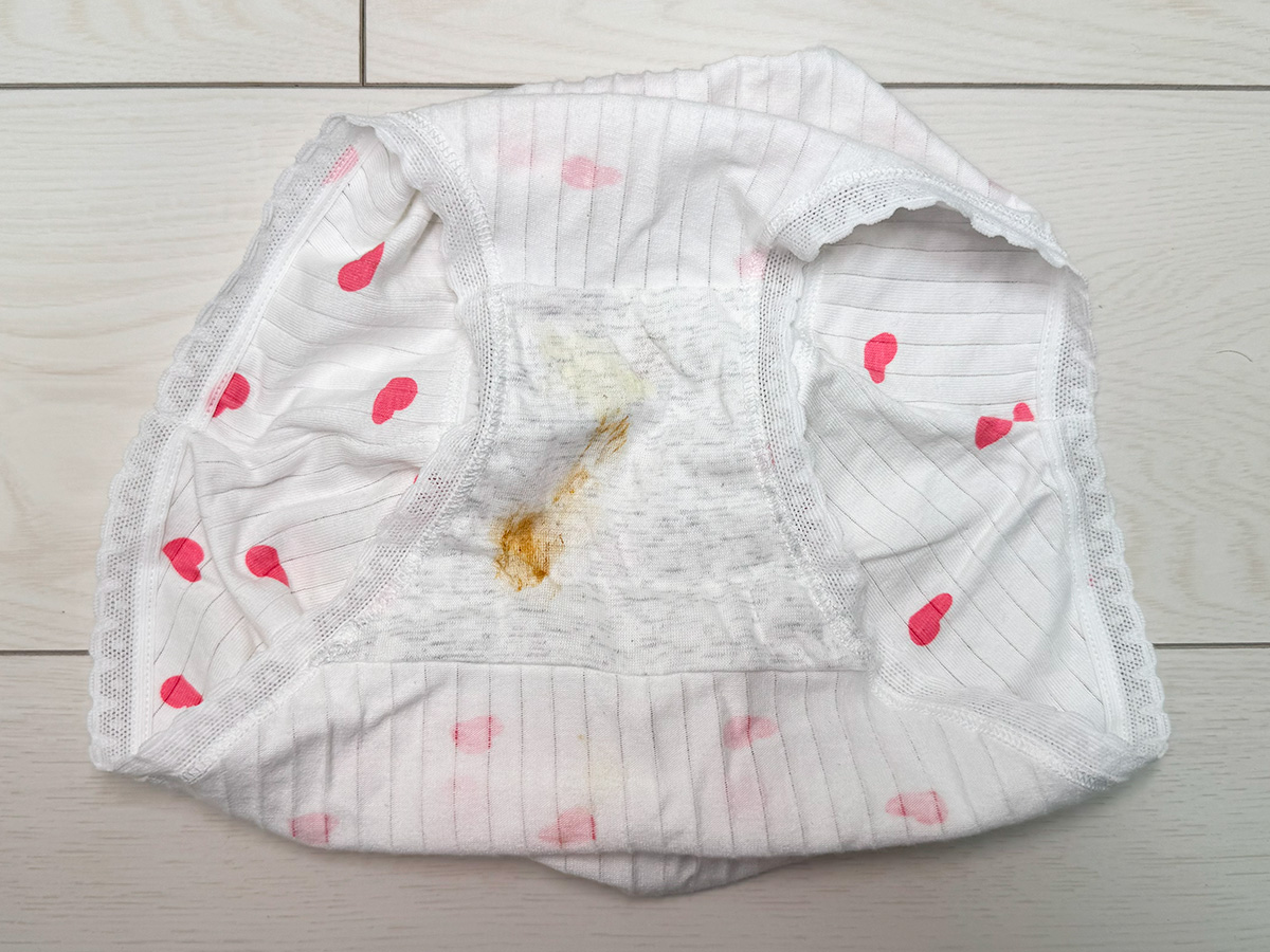 3日連続着用、うんちをした後にそのまま履いたため、うんちとおりものがべっちゃりと付着したパンツです。