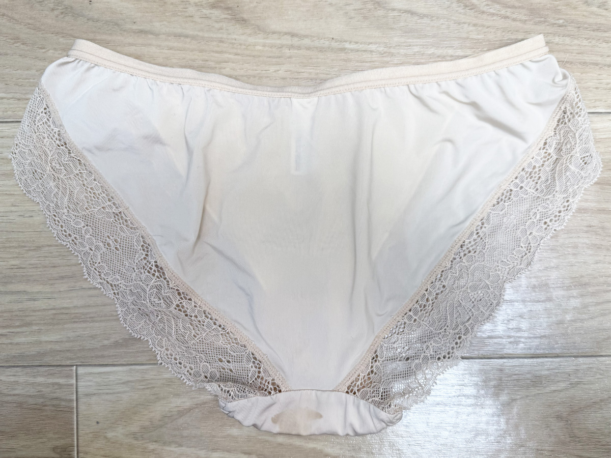 1週間も連続で履き続けて頂いたため、かなりおりものが付着しています。