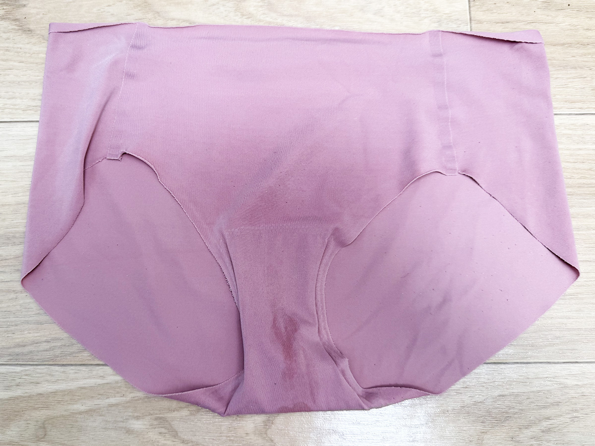 1週間も連続で履き続けて頂いたため、かなりおりものが付着しています。
