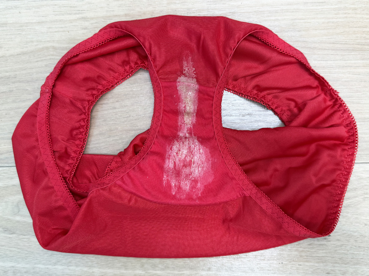 1週間も連続で履き続けて頂いたため、かなりおりものが付着しています。