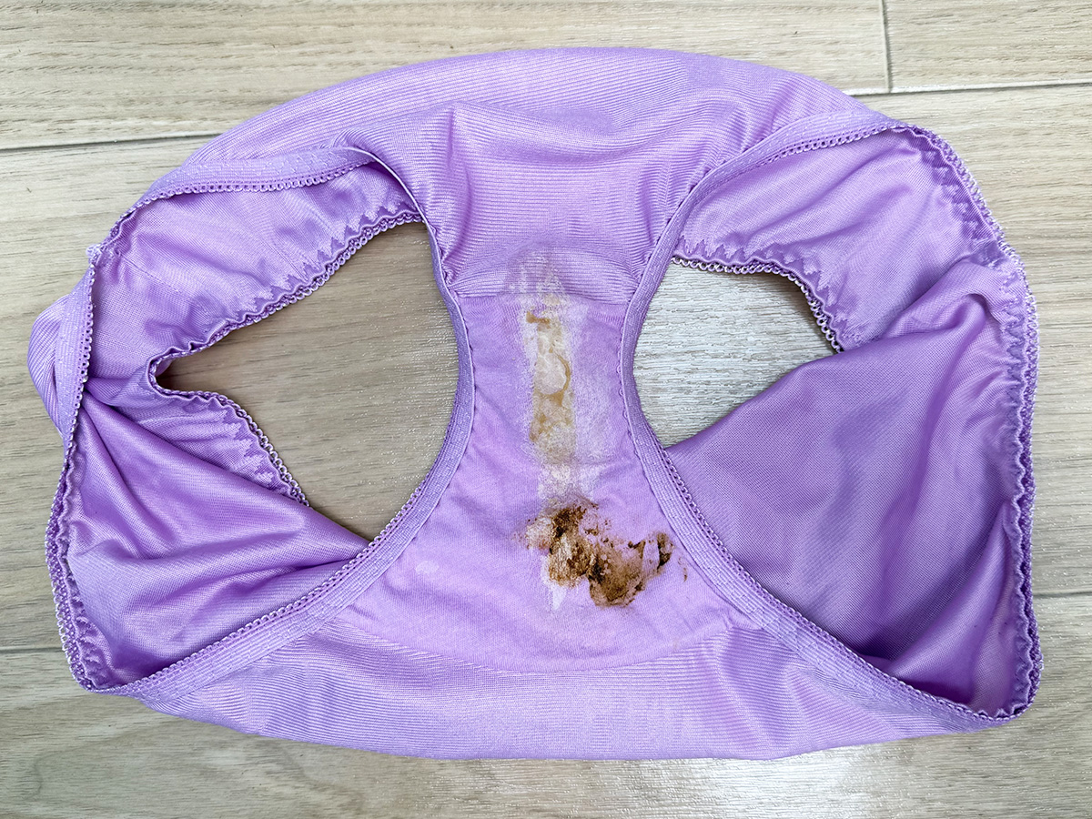 着用中にオナラをしようとしたらうんちも相当付着しています。