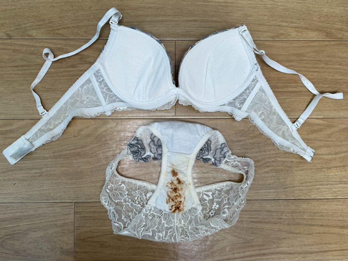 3年前に購入!うんこ付着ブラパンセット!【ももなちゃん22歳女子大生】