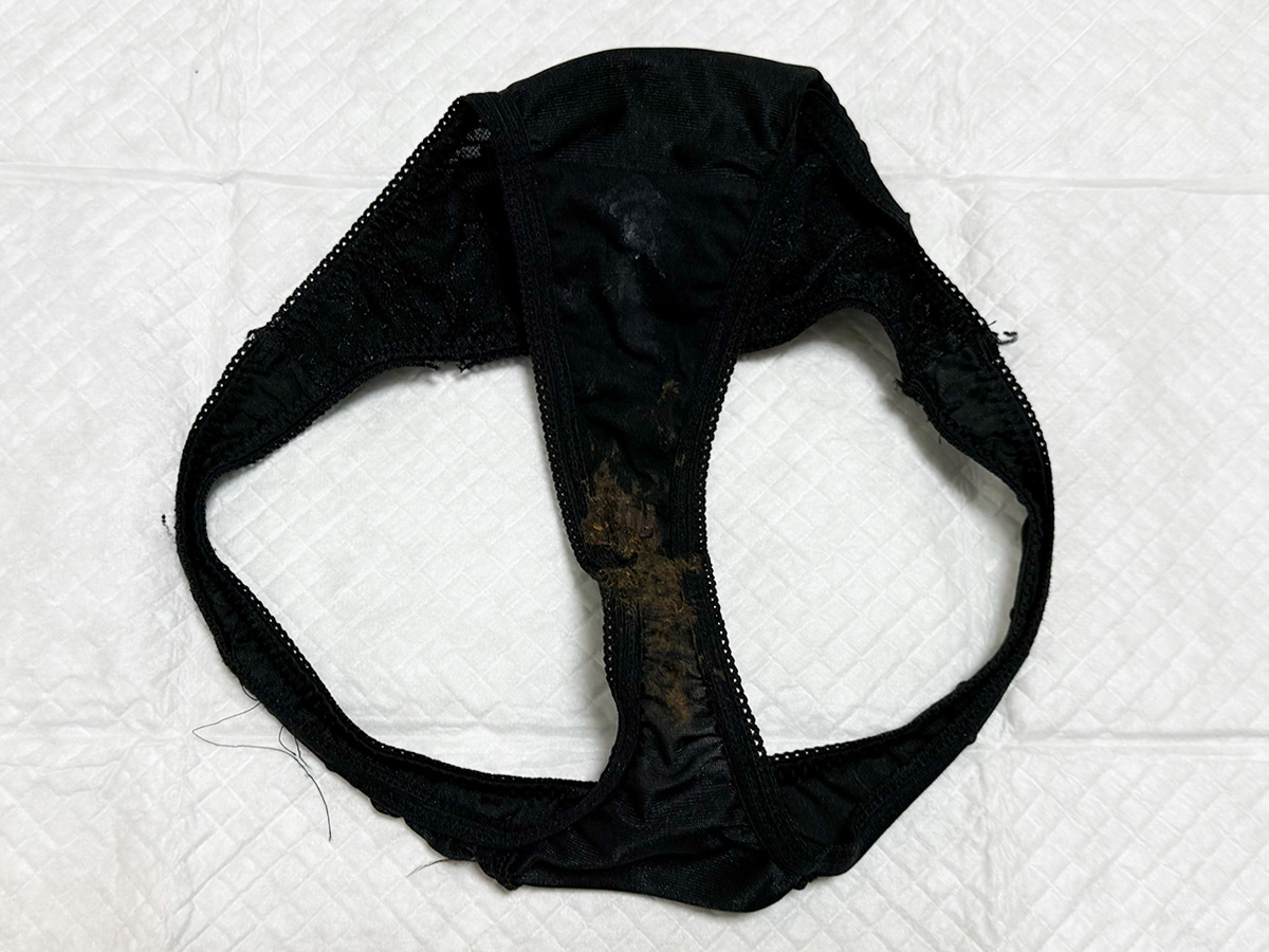 3日着用、うんこをし、拭かないで着用した影響で、うんこ・おりものが付着しています。
